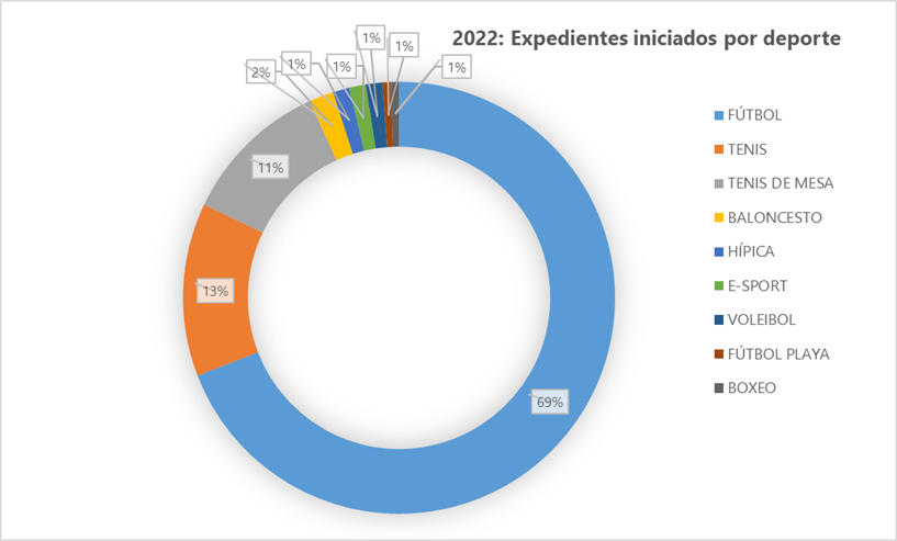 De las 555 actuaciones de SIGMA, 159 están relacionadas con alertas relacionadas con la integridad de las apuestas deportivas y de las competiciones deportivas, siendo su distribución por deporte la siguiente: