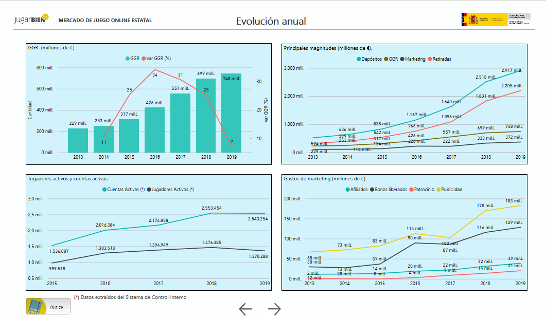 Se publica el informe anual de mercado de juego online estatal de 2019. Este informe, compendio de los informes trimestrales de juego online publicados por la DGOJ, se realiza como paso previo a la publicación de los Datos del Mercado Español de juego.