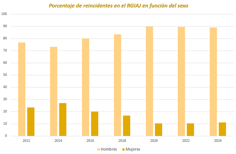 Porcentaje de reincidentes en el RGIAJ teniendo en cuenta el sexo del solicitante