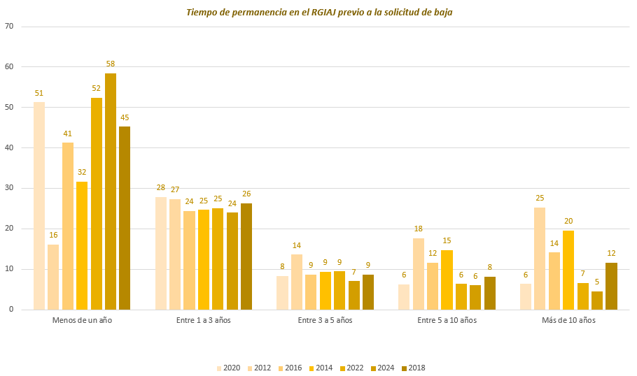 En relación con los datos más relevantes sobre estas solicitudes de baja, y en concreto, el tiempo en que la inscripción estuvo vigente:
