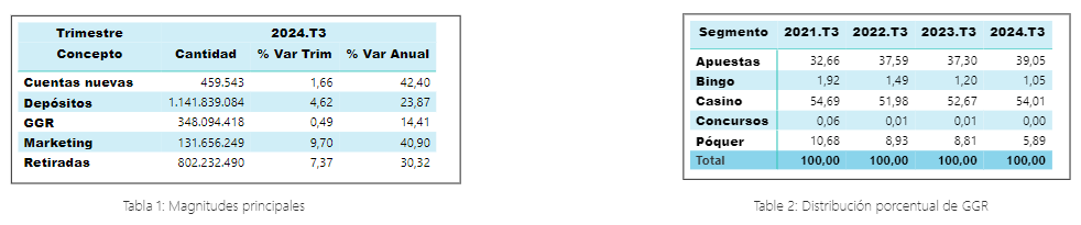 Se publica el 3er informe trimestral sobre la evolución del mercado de juego online correspondiente al periodo: julio-septiembre 2024.