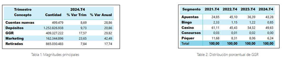 Se publica el 4º informe trimestral sobre la evolución del mercado de juego online correspondiente al periodo: Octubre-Diciembre 2024.