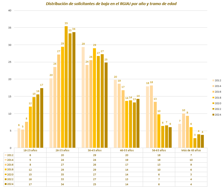 La evolución de las solicitudes de baja para cada uno de los ejercicios puede consultarse en el siguiente gráfico: