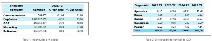 De resultas de los movimientos analizados, la distribución porcentual del GGR en los diferentes segmentos en los segundos trimestres del periodo 2022 a 2025 se recoge en la Tabla 2.